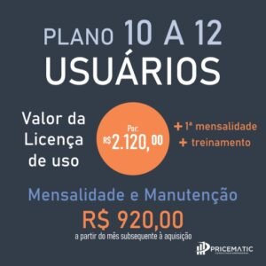 Valor da Licença de uso: R$ 1.865,00, com Licença de uso do Sistema, valor da 1ª Mensalidade e Treinamento em vídeo. A manutenção de R$ 665,00 para 07 a 09 usuários será cobrada mensalmente à partir do mês subsequente a aquisição de Licença de Uso do Sistema.